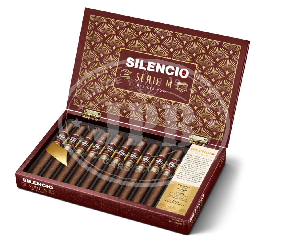 “In collaboration with Sandy Cobas, we’re proud to build on the narrative of Silencio Serie M by releasing a one-of-a-kind cigar that is equal parts timeless and unique,” said Sean Williams, brand ambassador for Silencio, via a press release. “With Silencio Serie M Reserva Roja, the collective expertise of El Titan de Bronze and the mastery of our Silencio team comes to life in an artisanal blend that was created to deliver a memorable smoking experience.”