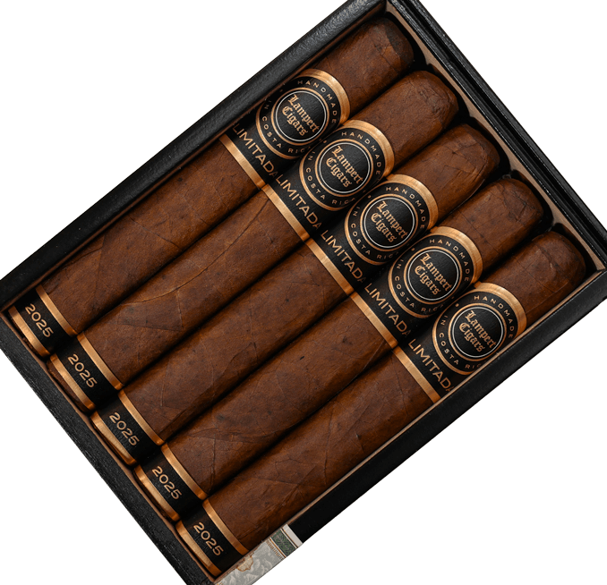 Lampert Limitada 2025, un trabuc toro presat în cutie, de 6 x 54, care prezintă un înveliș întunecat Habano Vuelta Abajo (HVA) din Ecuador, asociat cu o legătură Habano 2000 din Ecuador și umpluturi selectate meticulos, provenite din loturi mici din Brazilia, Republica Dominicană și Nicaragua.